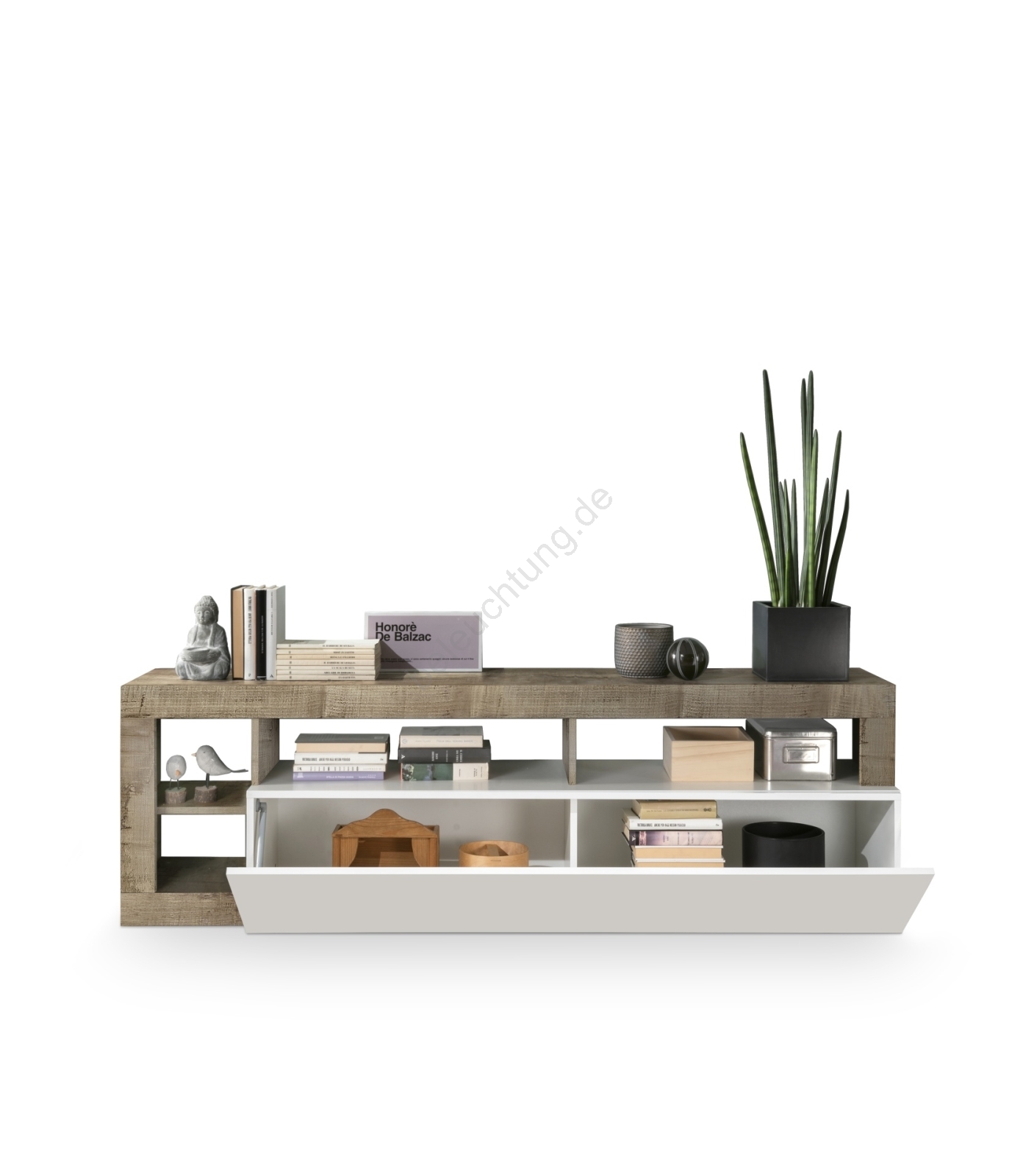 • TV-Lowboard LENOR Weiß/helle Eiche
