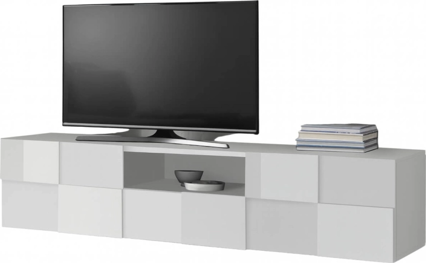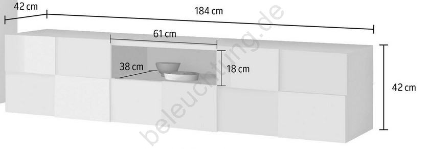 • Dank der langgestreckten, rechteckigen Form ist es ideal als Unterschrank unter einem wandmontierten Fernseher oder als moderne Stauraumlösung im Wohnzimmer.