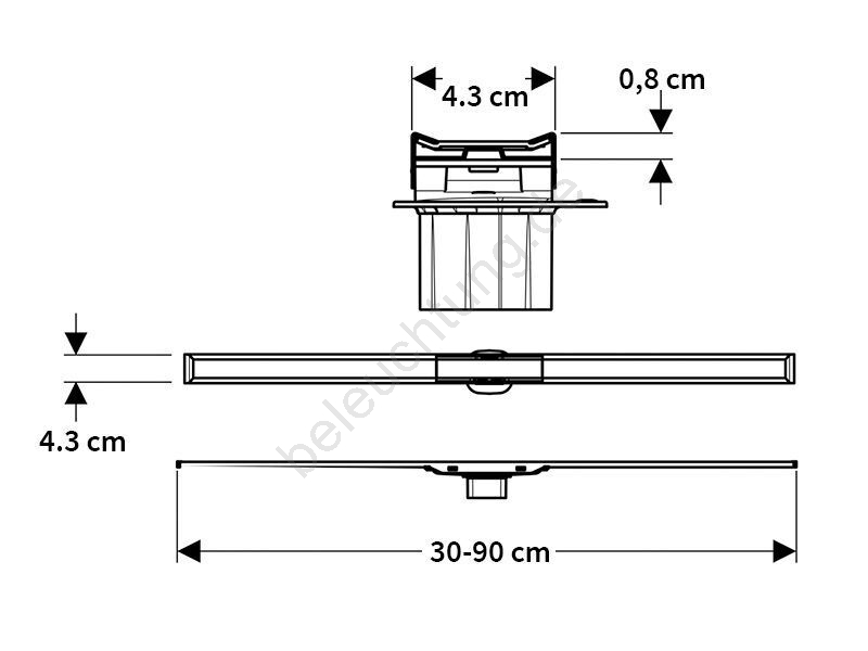 • Die 90 cm lange Duschrinne ist aus rostfreiem Edelstahl gefertigt.