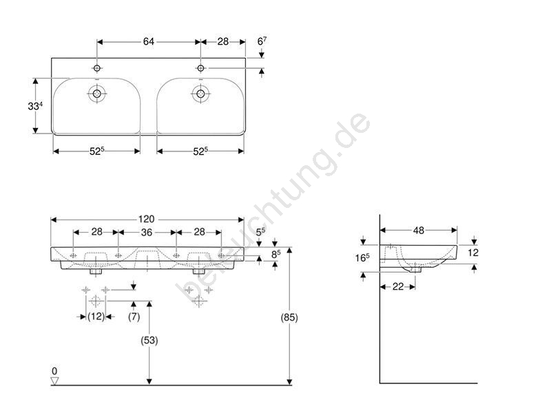 Geberit 500.223.01.1 - Wandhängendes Doppelwaschbecken Smyle Square 120x48 cm Keramik/weiß