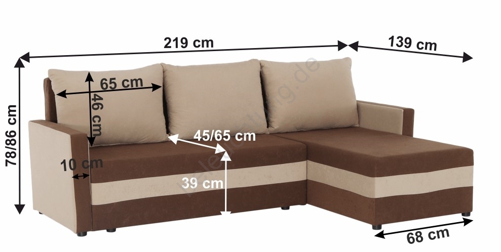 • Das Ecksofa ist für die Wandaufstellung vorgesehen.