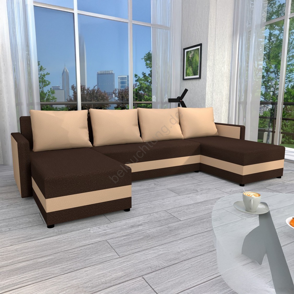 Gepolsterte, universell montierbare U‑Eckcouch mit Schlaffunktion BRISTOL, Braun/Beige