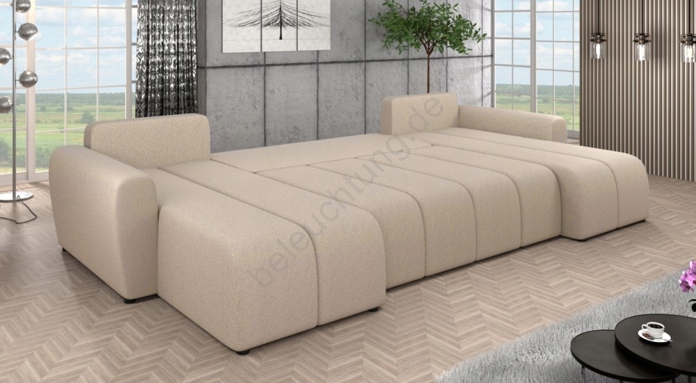 Gepolsterte, universell einsetzbare U-Sitzgarnitur NEWPORT mit Schlaffunktion, beige
