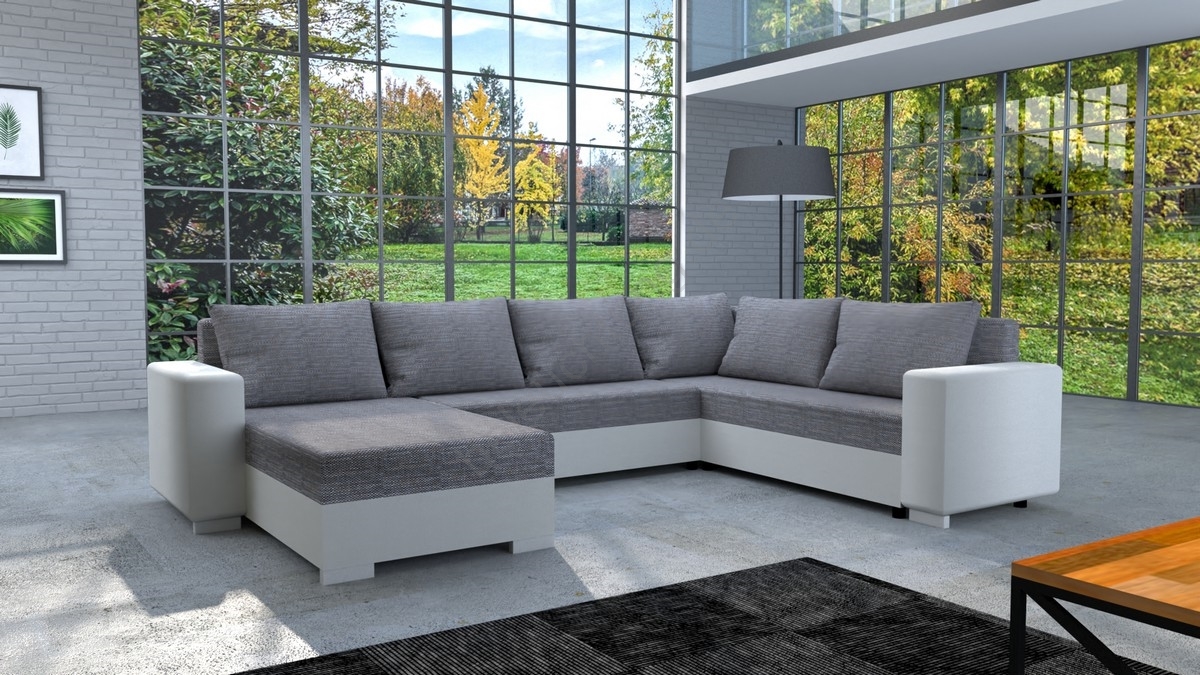 Gepolsterte, universell einsetzbare, ausziehbare U‑Sitzgarnitur YORK, Weiß/Grau