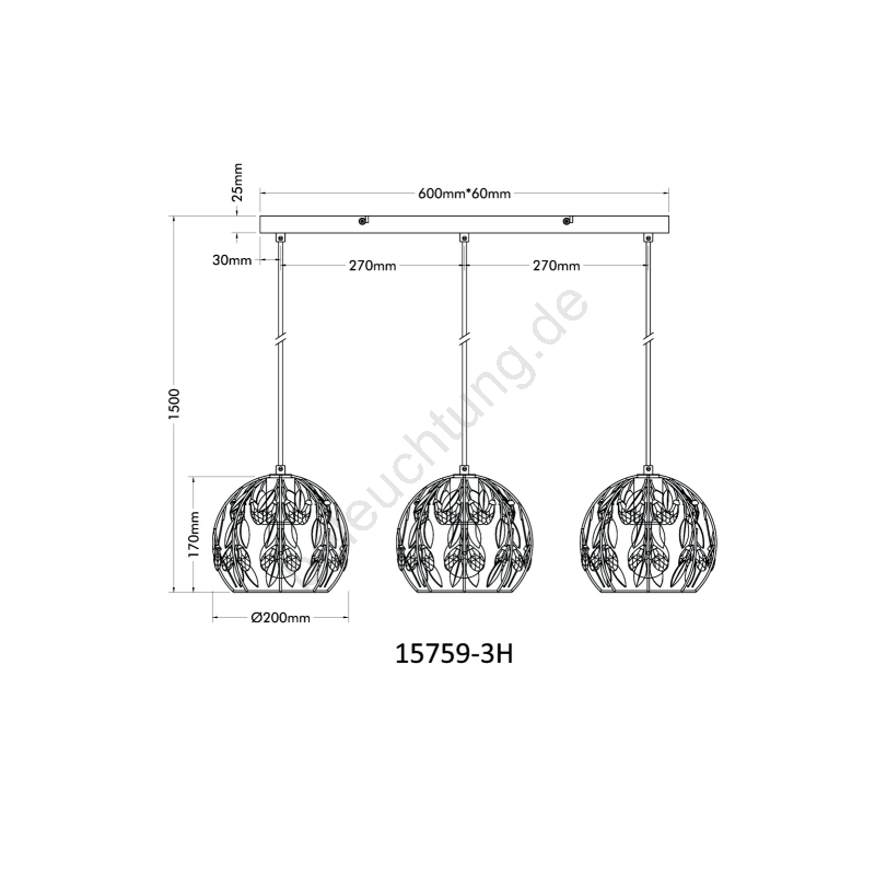 Globo - Hängeleuchte mit Kabelaufhängung 3xE27/40W/230V zeichnet sich durch schönes und funktionales Design aus. Eine Glühbirne mit E27 Sockel ist für die Leuchte geeignet. Hier, können Sie andere Glühlampen zu vorteilhaften Preisen kaufen. Sie erhalten eine attraktive Ergänzung für Ihr Zuhause.