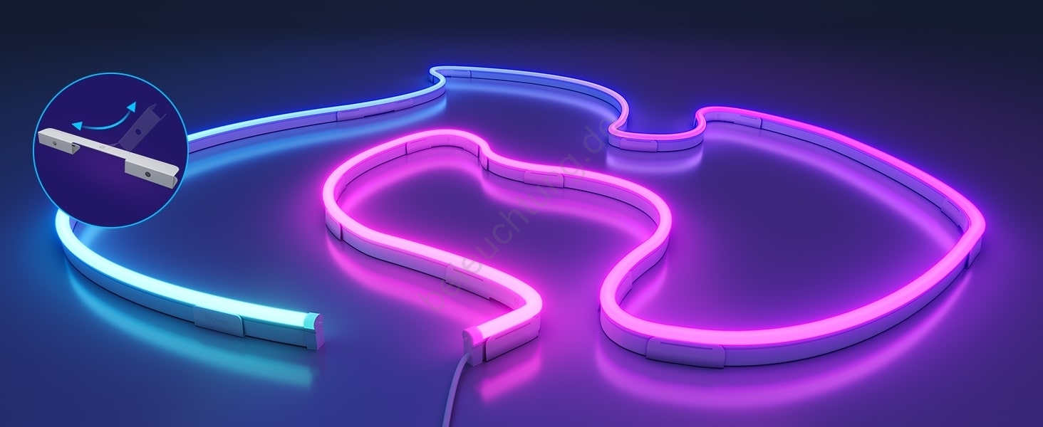 • Lieferumfang: 1x flexibler LED-Neon-Streifen, 1x Netzadapter, selbstklebende Clips, Schrauben.