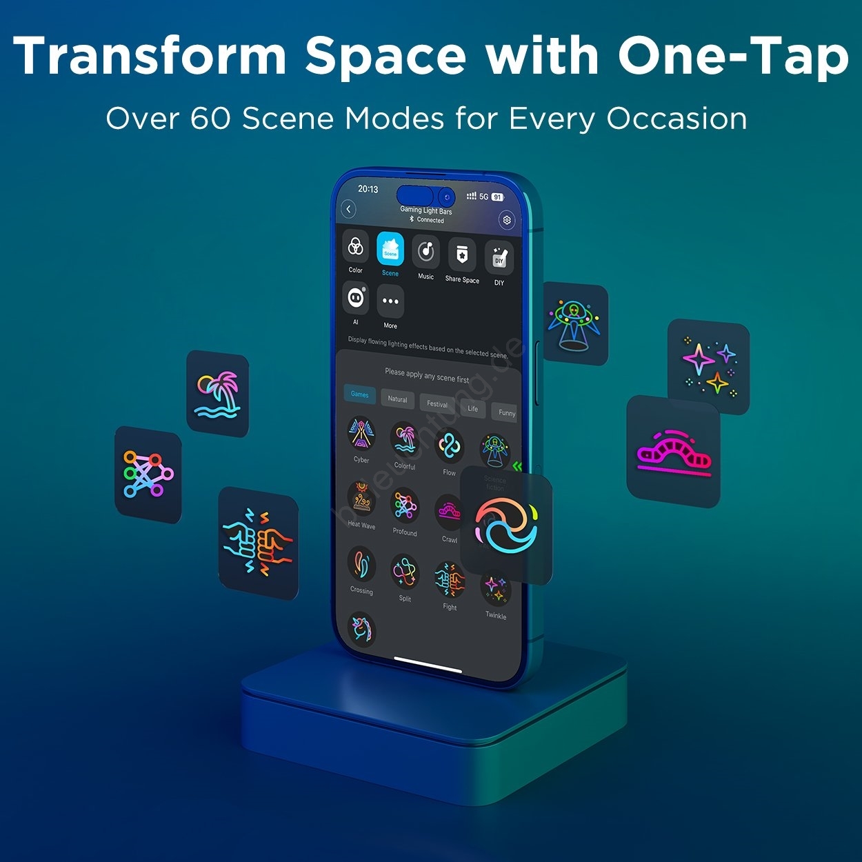 • Musikmodus – die Lichter reagieren auf Rhythmus und Ton und beleben jedes Spiel und jeden Film.