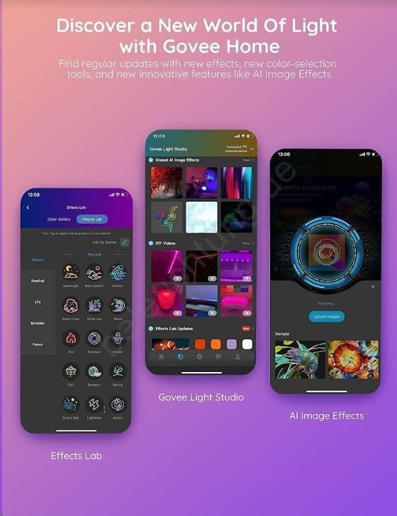 • Verwalten Sie Farbeinstellungen und Lichtintensität einfach über die Govee Home App (kompatibel mit iOS und Android).