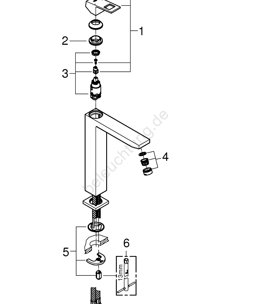 • Teil der Eurocube-Serie, die eine große Auswahl an Armaturen mit geometrisch präzisem Design bietet.