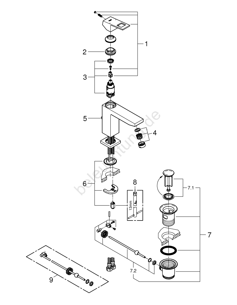 • Einhebel-Waschtischarmatur GROHE Eurocube mit Ablaufgarnitur für einfache Bedienung.