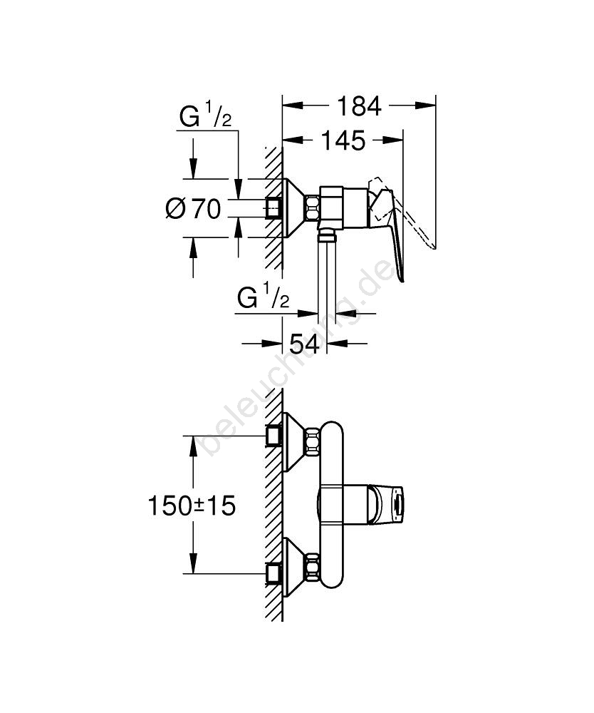 • Wand-Einhebel-Duscharmatur für einfache Montage.