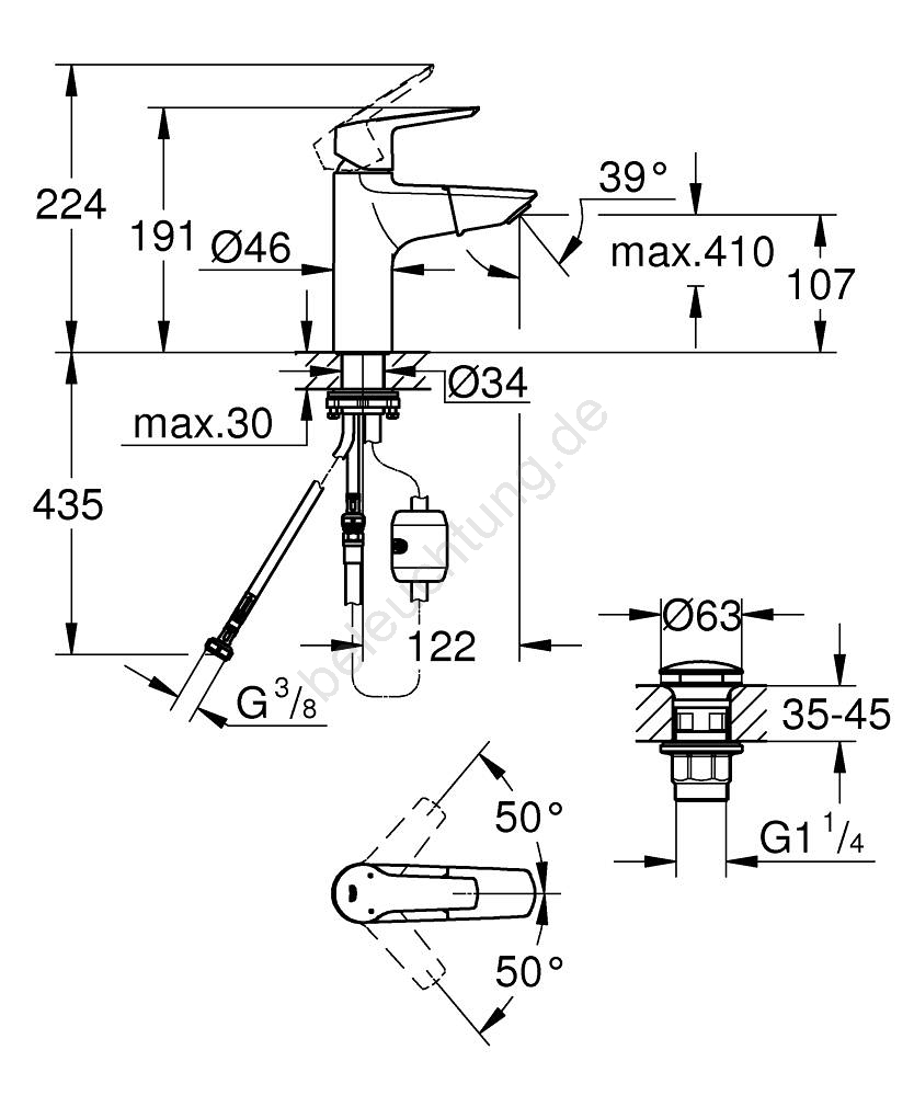 • Schnellmontagesystem GROHE QuickFix für einfache Installation.