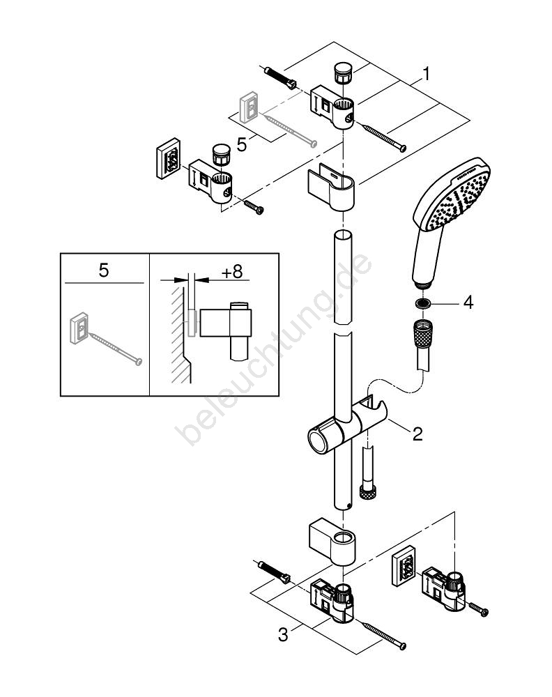 • GROHE FastFixation-System mit verstellbarer oberer Halterung für einfache Montage in vorhandene Bohrlöcher.
