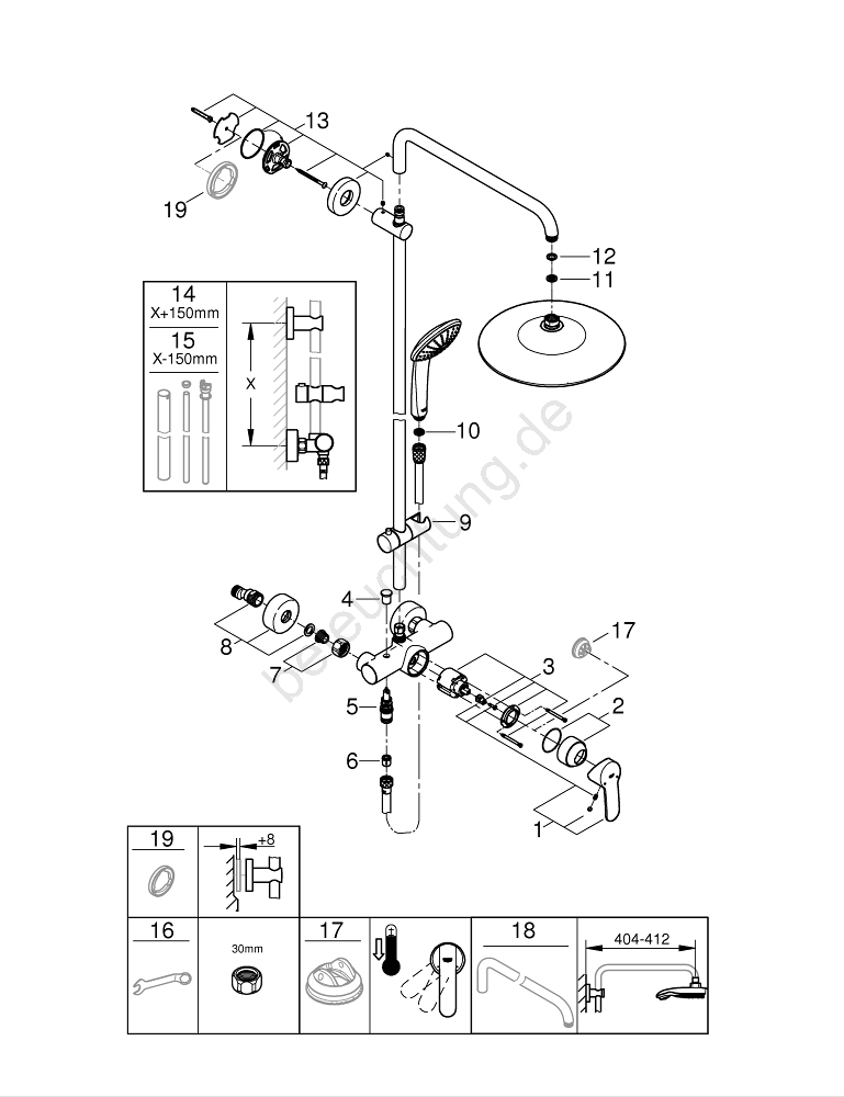 • Im Lieferumfang enthalten ist der GROHE QuickSpanner für eine einfache Montage.