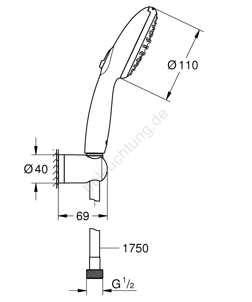 • Wandhalter Vitalio Universal, nicht verstellbar, mit Möglichkeit zur Montage durch Verschraubung (Schrauben und Dübel sind im Lieferumfang enthalten) oder Verklebung (Kleber GROHE QuickGlue S 41 247 000 wird separat verkauft).