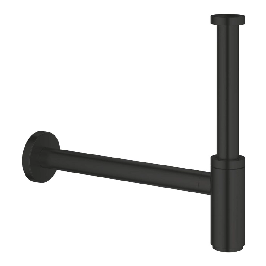 • Stilvoller GROHE-Flaschensiphon in Mattschwarz für moderne Badezimmer.