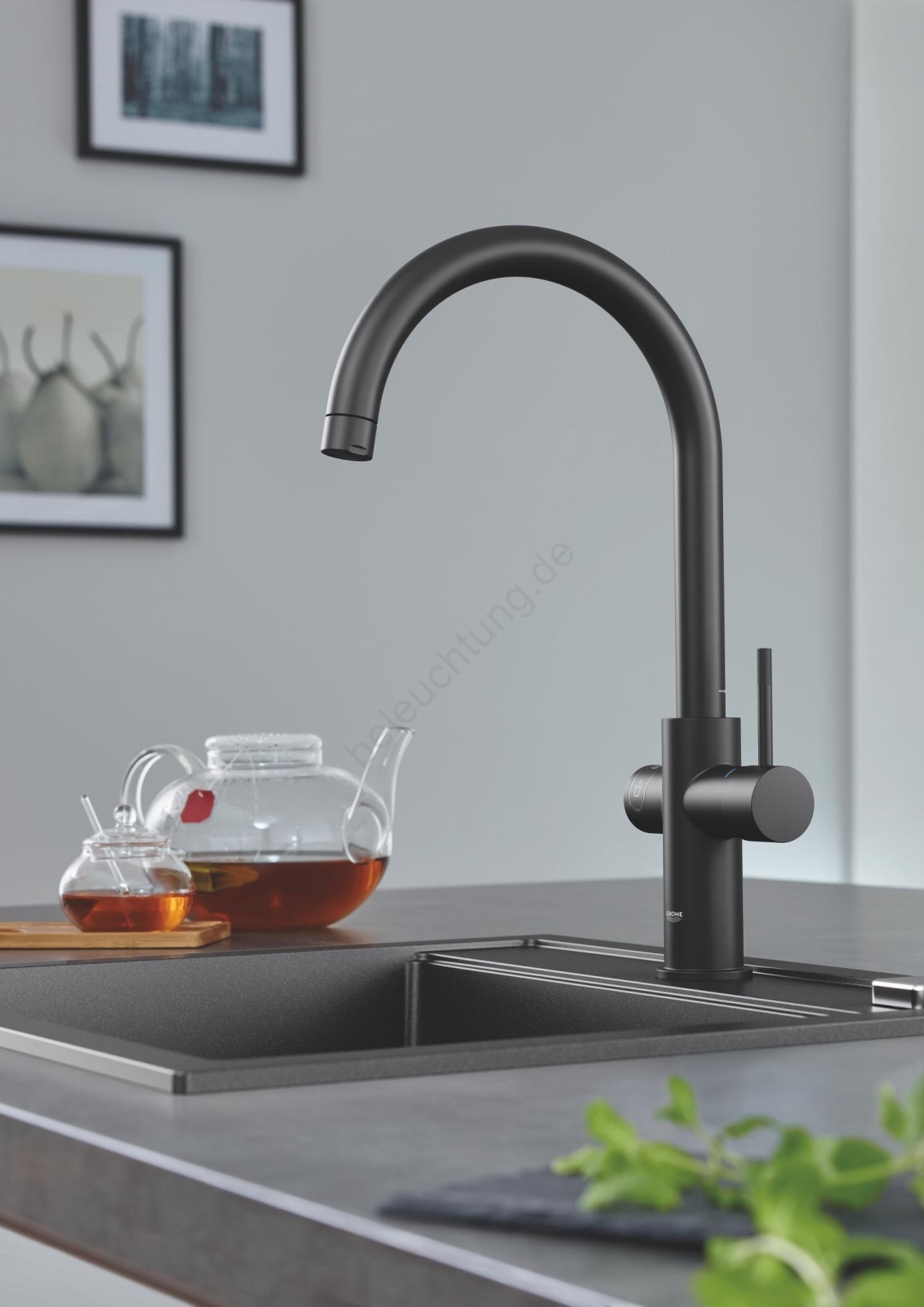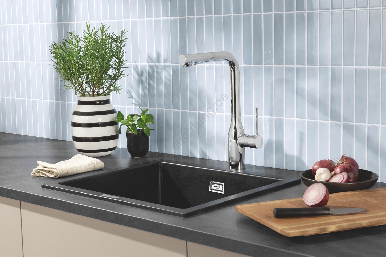 • Quarzkomposit-Spüle GROHE K700 in elegantem Granite Black.