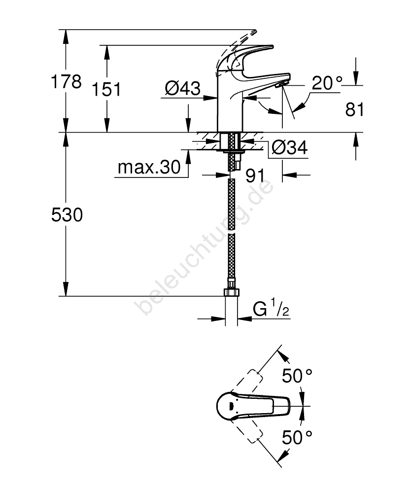 • Einhebel-Waschtischarmatur für Einlochmontage.