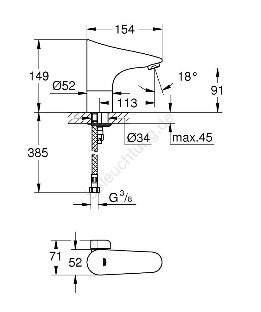GROHE 36207001 - Elektronische Waschtischarmatur EUROPLUS E DN 15, glänzender Chrom