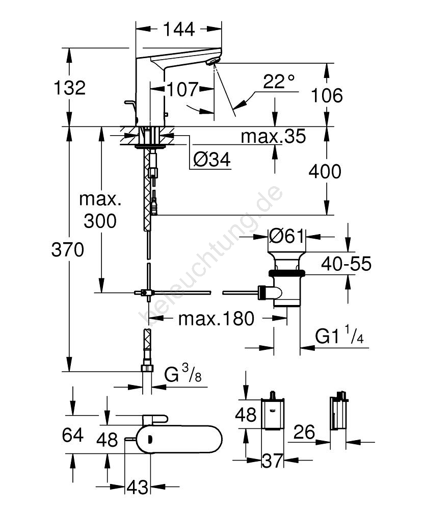 • Berührungslose Waschtischarmatur mit Infrarotsensor zur Überwachung, Einstellung und Wartung.