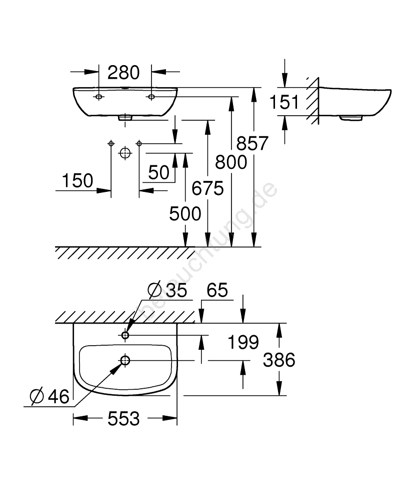 GROHE 39440000 - Waschbecken BAU CERAMIC 553 × 386 mm Keramik/weiß