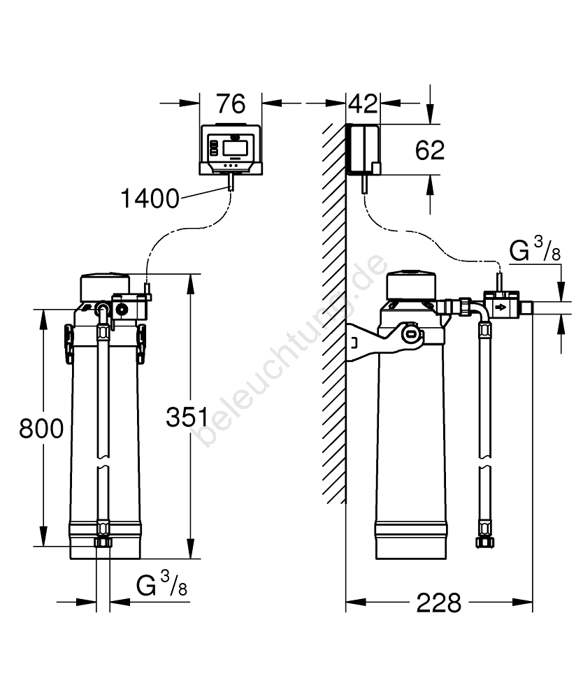 • Der Filter hat eine Kapazität von 400 Litern bei einer Wasserhärte von 17° dGH.