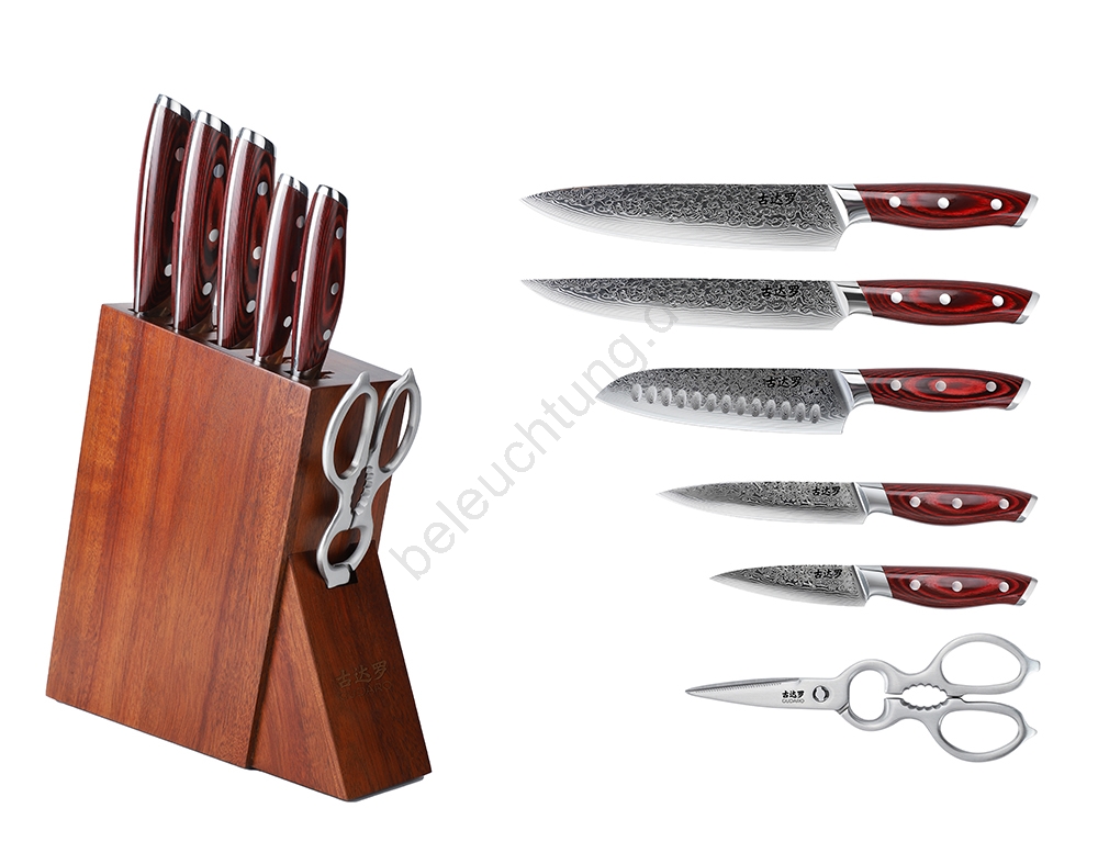 Blöcke, Halterungen und Schärfgeräte, Damast, Gudaro, Haus und Garten, Haushalt, Haushaltsgeräte, Küchenutensilien, Marken, Messer, Sets