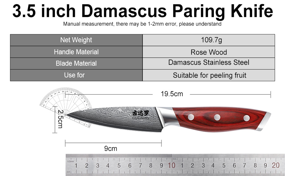 • Küchenmesser 3,5" (Dicke 2 mm).