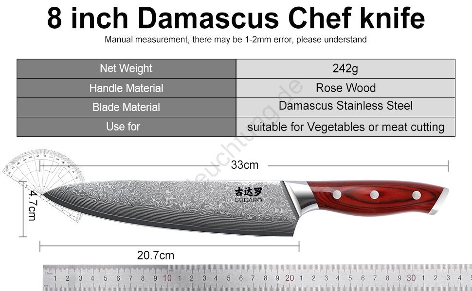 • Kochmesser 8" (Dicke 2,5 mm).