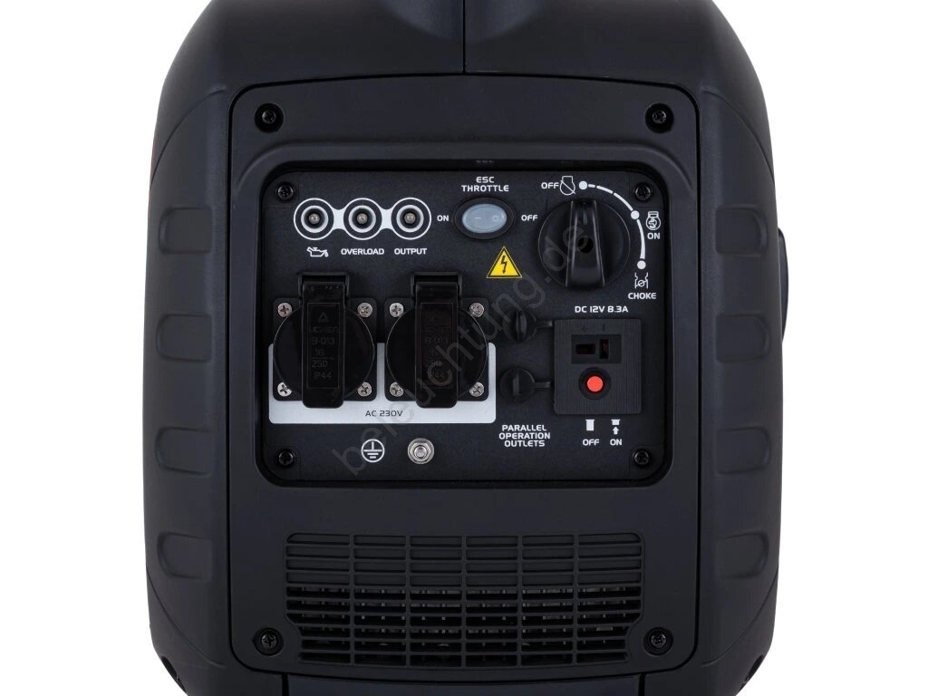 • Dieser Generator liefert Energie mit einer konstanten Frequenz von 50 Hz und einer Spannung von 230 V, wodurch alle elektrischen Geräte vor Beschädigungen geschützt werden.