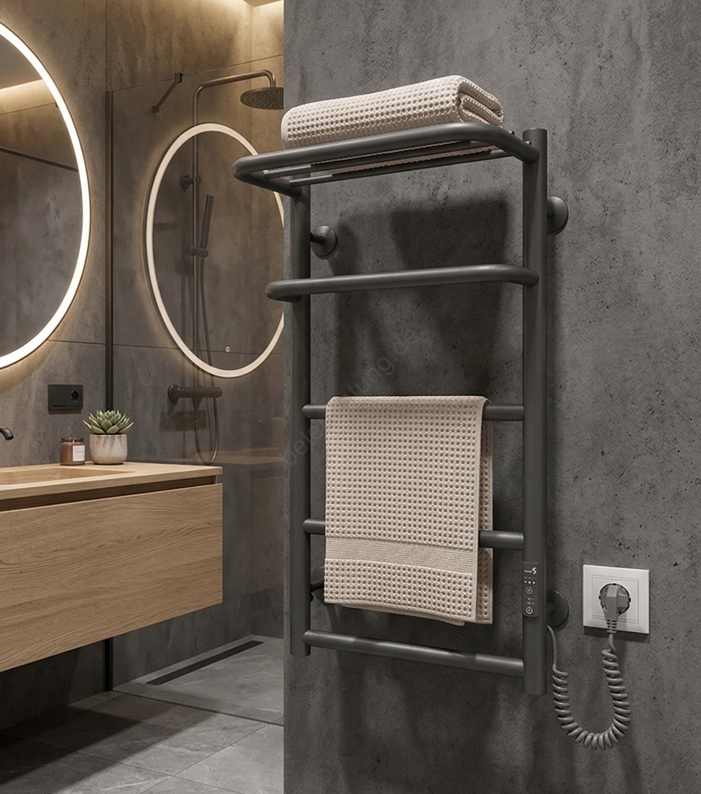 Badezimmer-Handtuchheizkörper HOTEL 75W/230V 66x42 cm Edelstahl/Anthrazit rechts