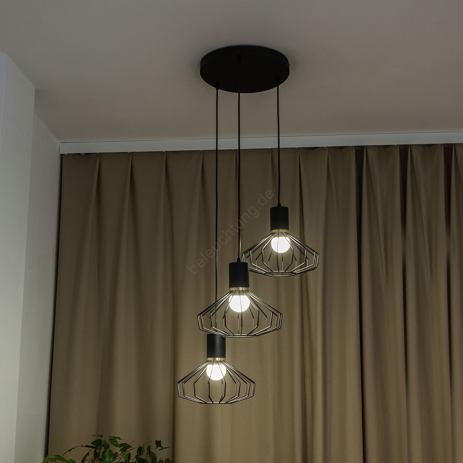 • Hängeleuchte mit Kabel SOLANO 3xE27/15W/230V schwarz/gold