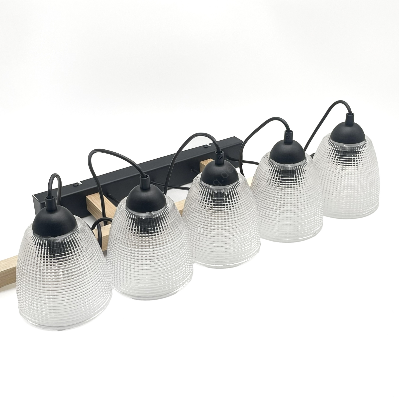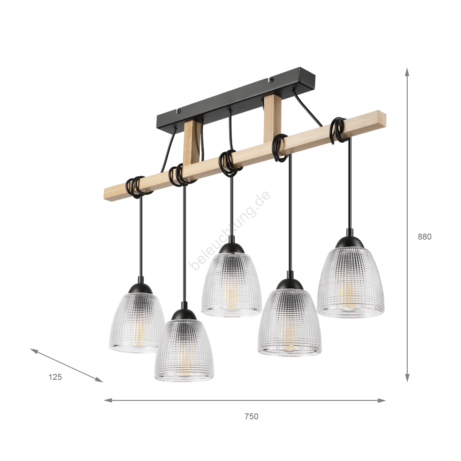 Hängeleuchte mit Kabelaufhängung LEANDRA 5xE27/15W/230V Eiche/Schwarz