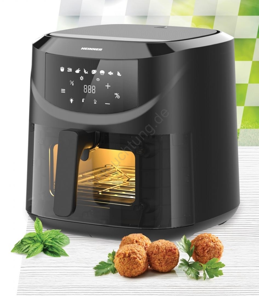 • Die Heißluftfritteuse ist ein moderner Küchenhelfer für die gesündere Zubereitung von Speisen mit minimalem Öl.