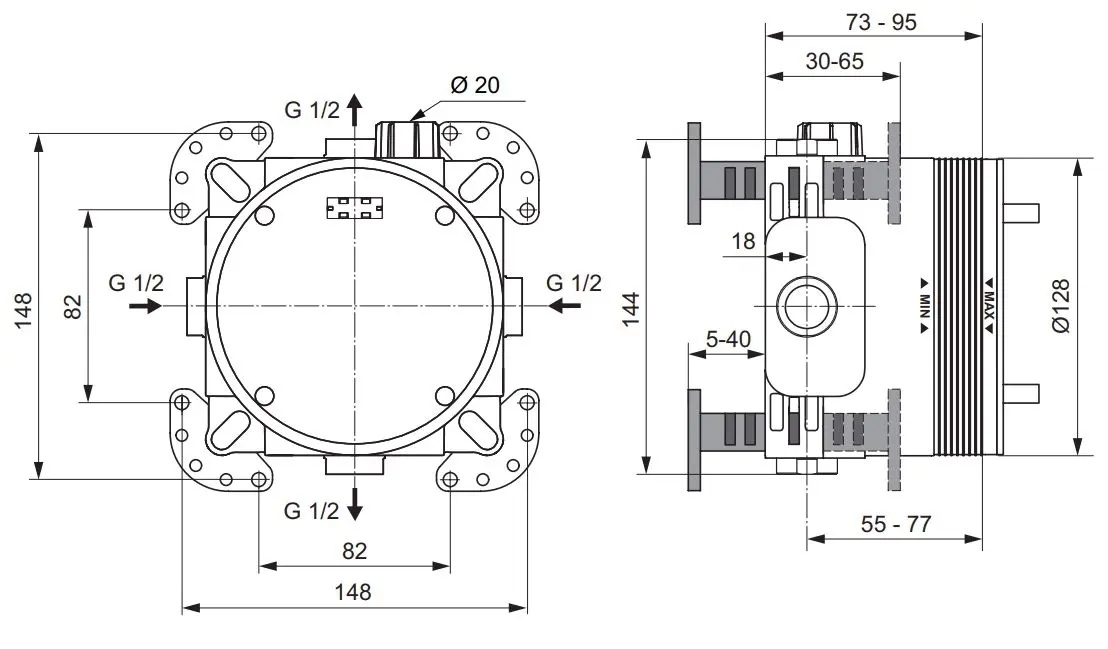 • Die universelle Unterputz-Einheit Ideal Standard EASY-Box ist für die Vormontage von Einhebel-Badewannen-, Dusch- und Thermostatarmaturen vorgesehen.