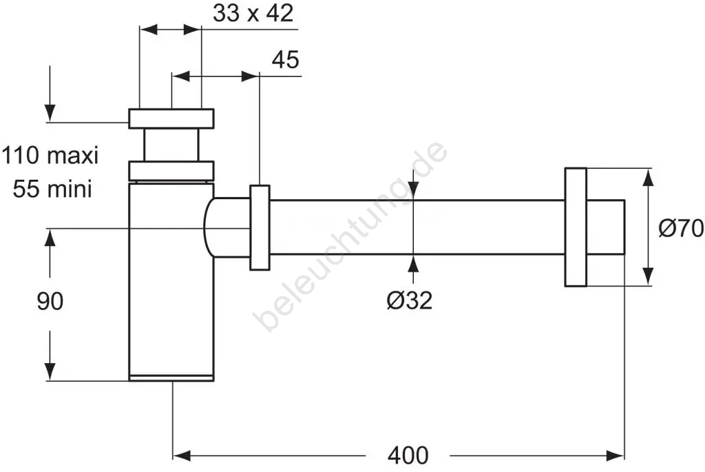 • Es handelt sich um einen Design-Siphon (sichtbare Ausführung).