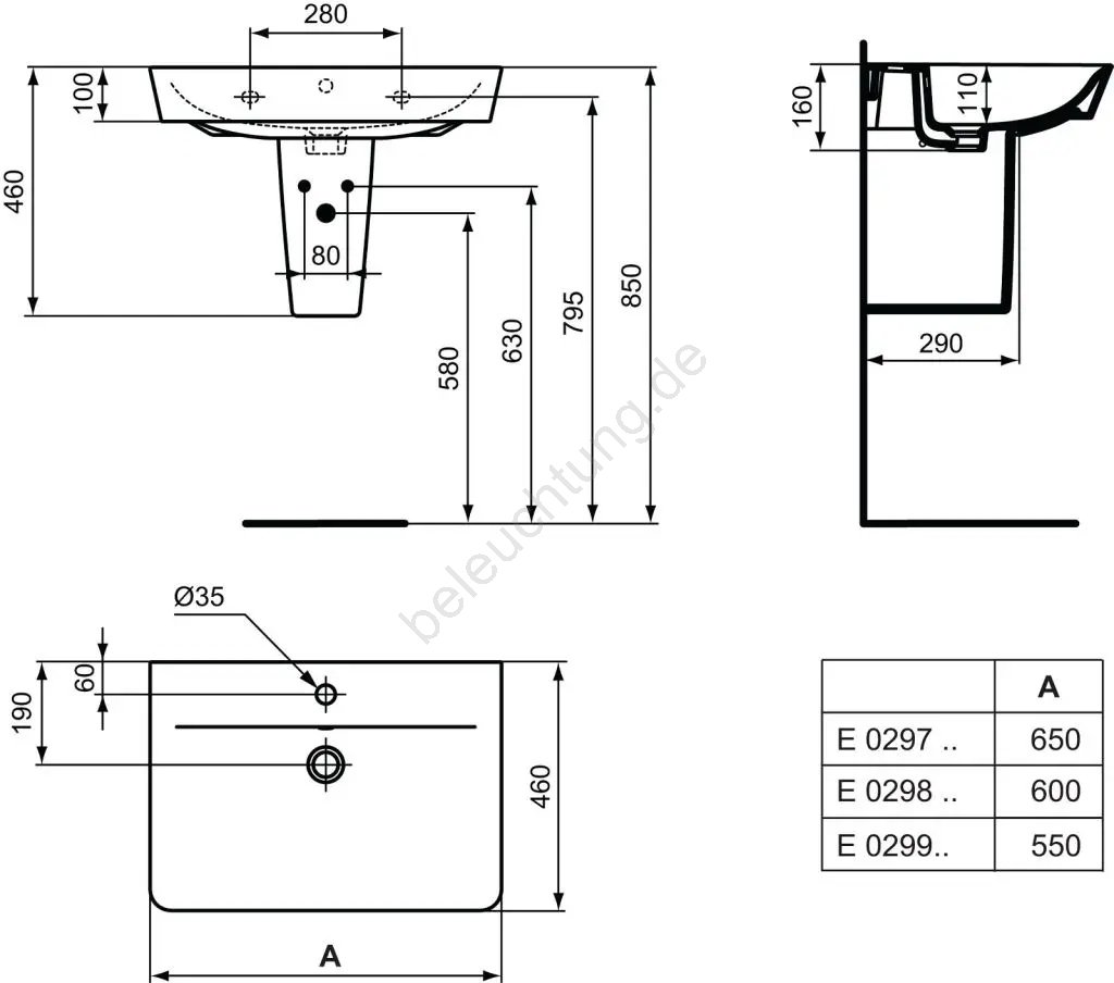 • Die Abmessungen 600 x 460 x 160 mm bieten ausreichend Platz für komfortables Händewaschen und ergänzen zugleich elegant das Erscheinungsbild Ihres Badezimmers.