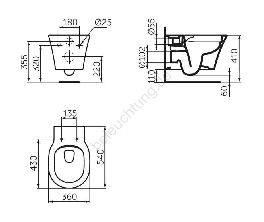 • WC-Sitz und Spülkasten sind nicht im Lieferumfang enthalten.