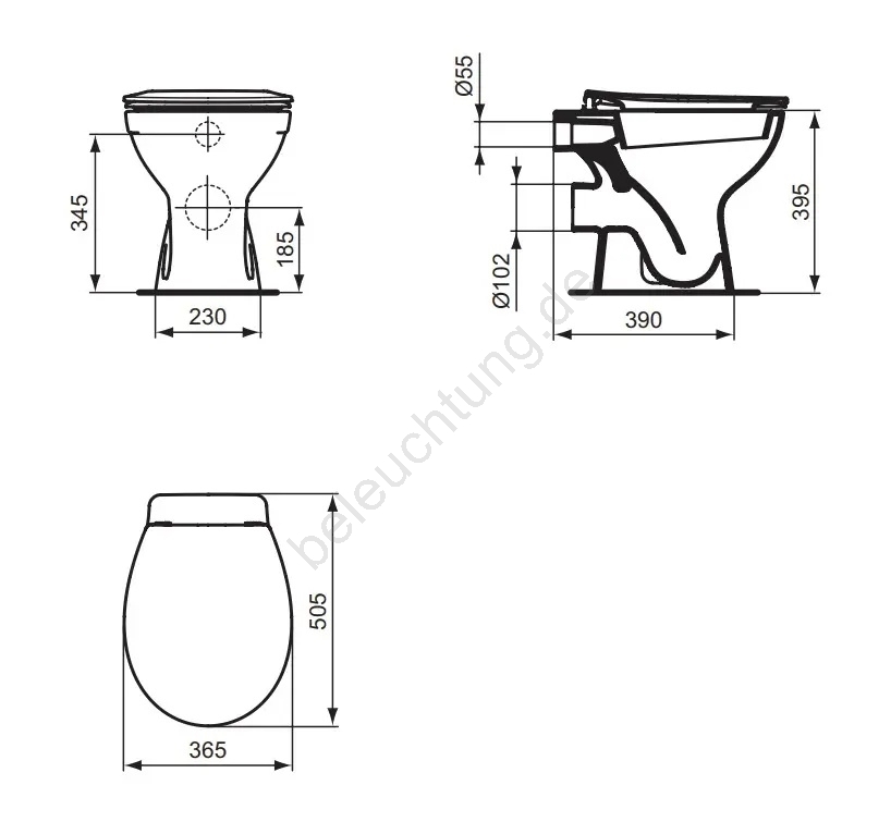 • Das WC ist mit einem standardmäßigen Hinteranschluss ausgestattet.