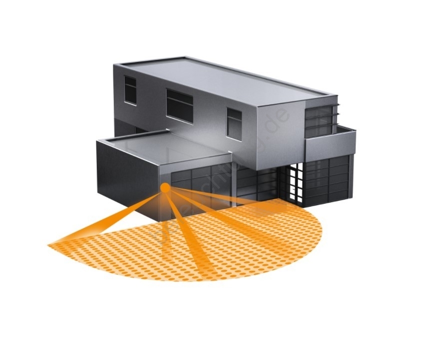 • Erfassungswinkel 180° mit Öffnungswinkel 90° und maximaler Reichweite von 12 Metern.