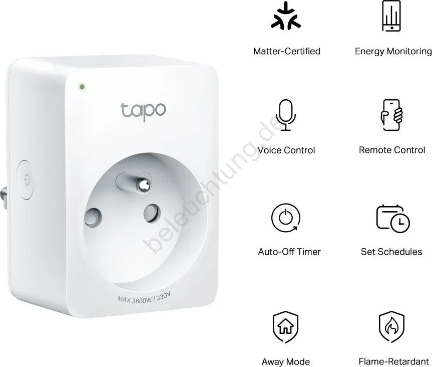 • Intelligente WLAN-Steckdose, die Sie über die Tapo-App von überall per Internet steuern können.