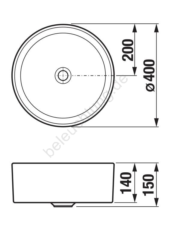 • Im Lieferumfang enthalten ist das Waschbecken ohne Siphon und Armatur.