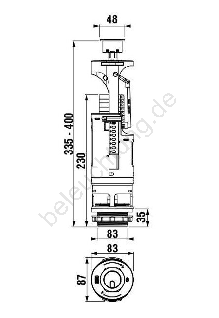 • Zwei-Mengen-Spülventil für WC-Spülkasten.