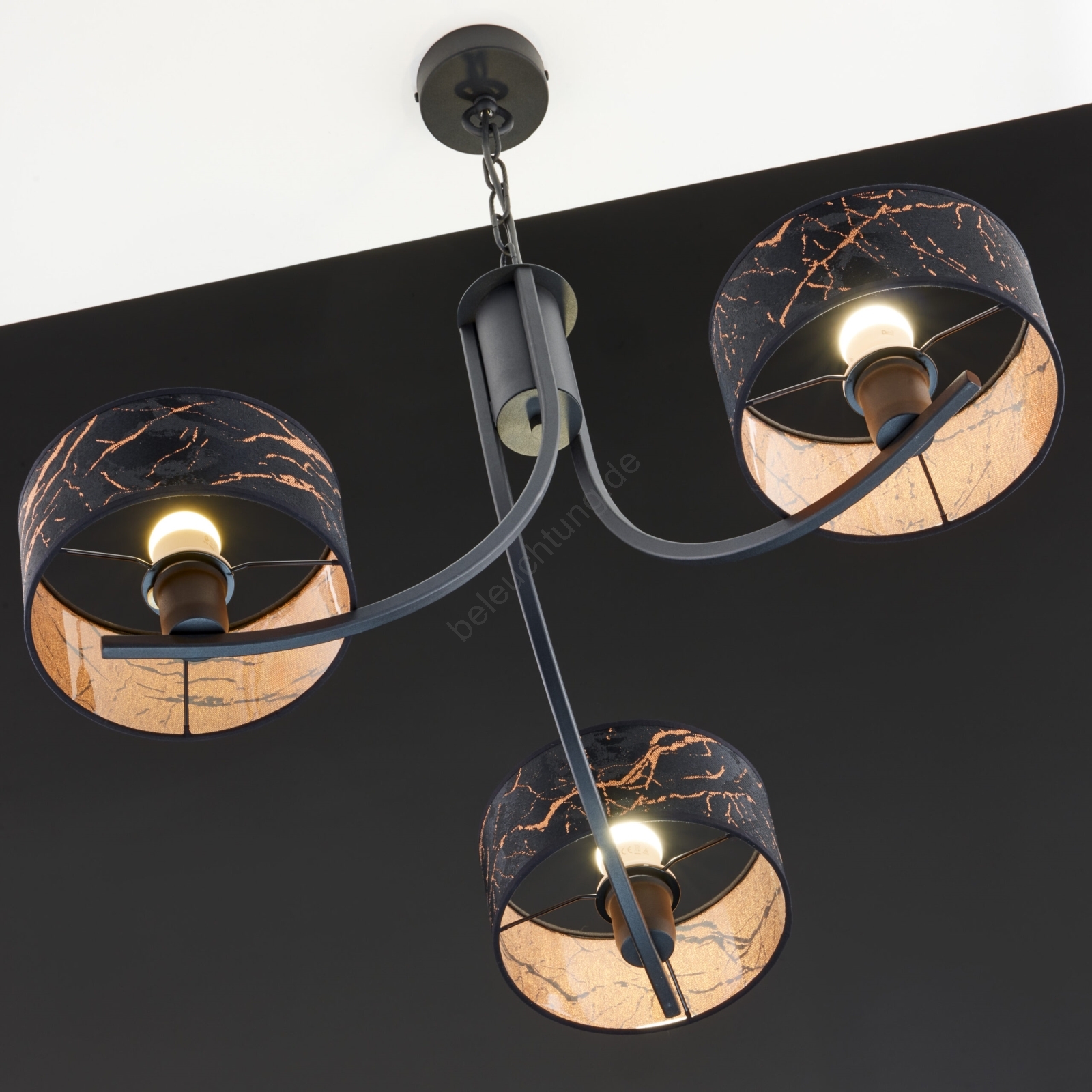 • Jupiter 2106 - Kettenleuchter ARTHUR 3xE27/15W/230V schwarz/orange/Marmor-Dekor
