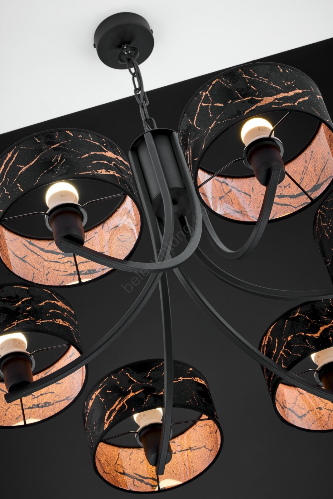 • Jupiter 2108 - Kronleuchter an Kette ARTHUR 6xE27/15W/230V schwarz/orange/Marmor-Dekor