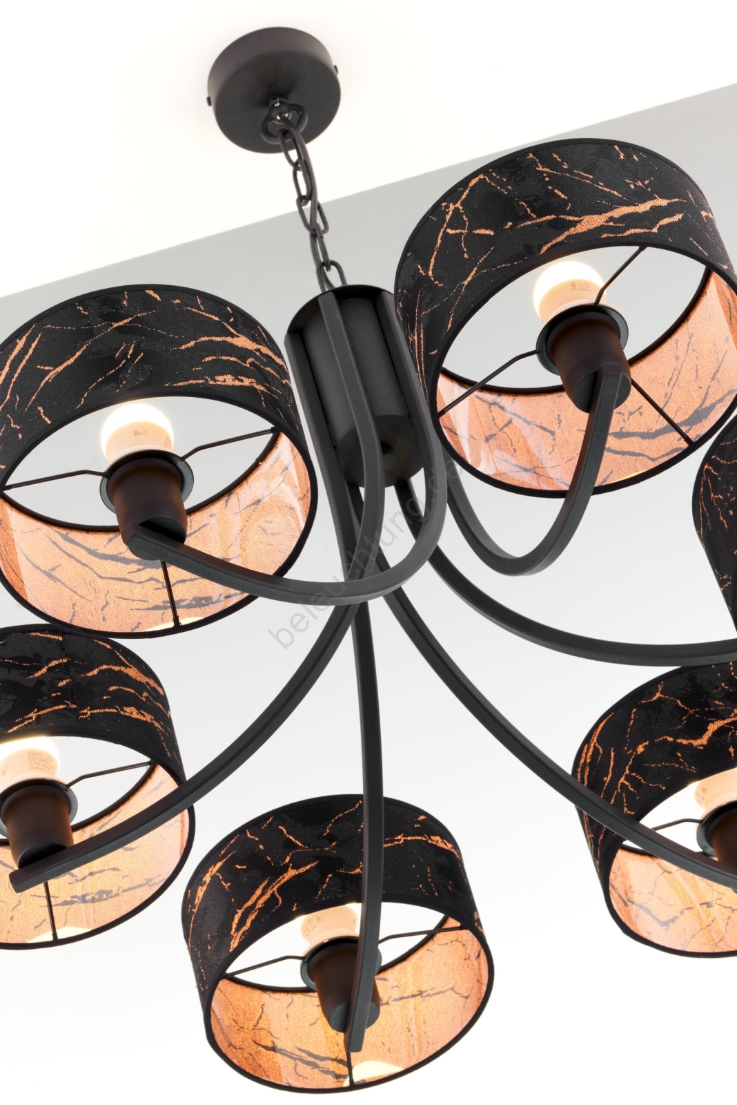 Jupiter 2108 - Kronleuchter an Kette ARTHUR 6xE27/15W/230V schwarz/orange/Marmor-Dekor
