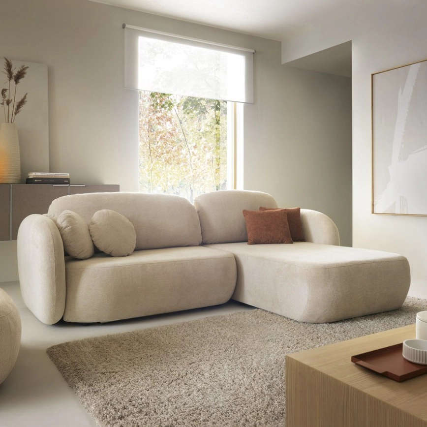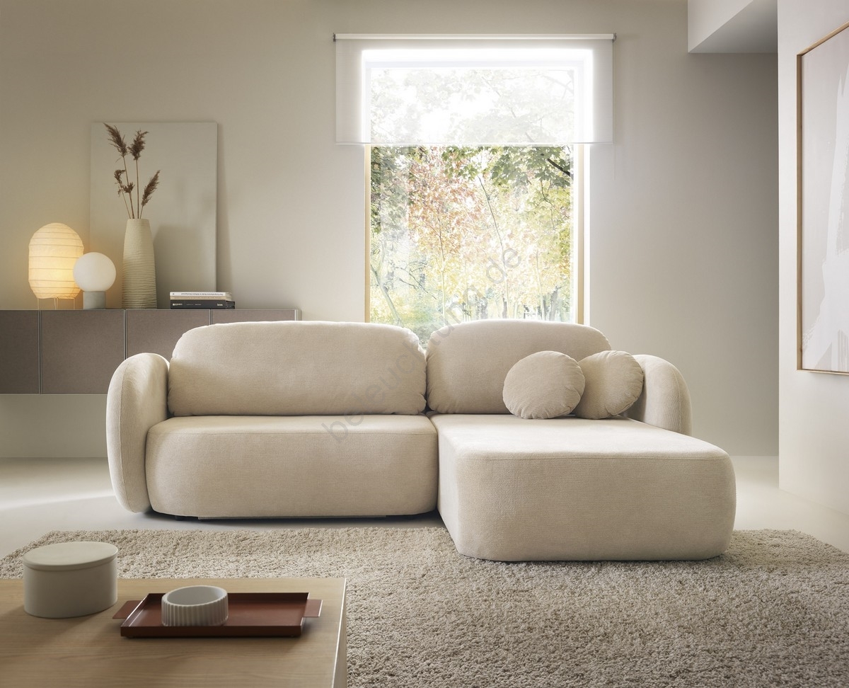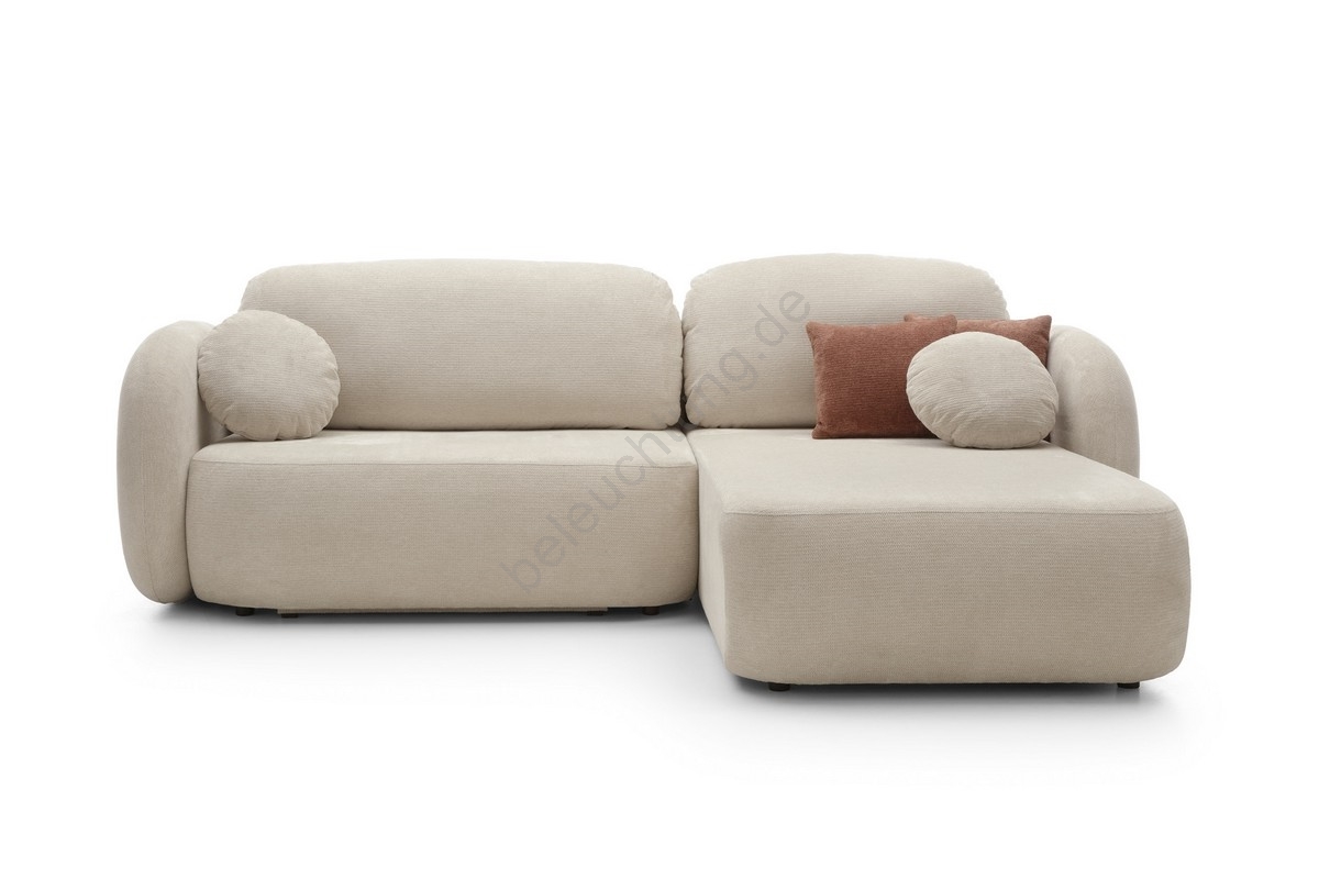 • Eckgarnitur OLBIA mit Schlaffunktion und Stauraum in L‑Form, rechts, beige