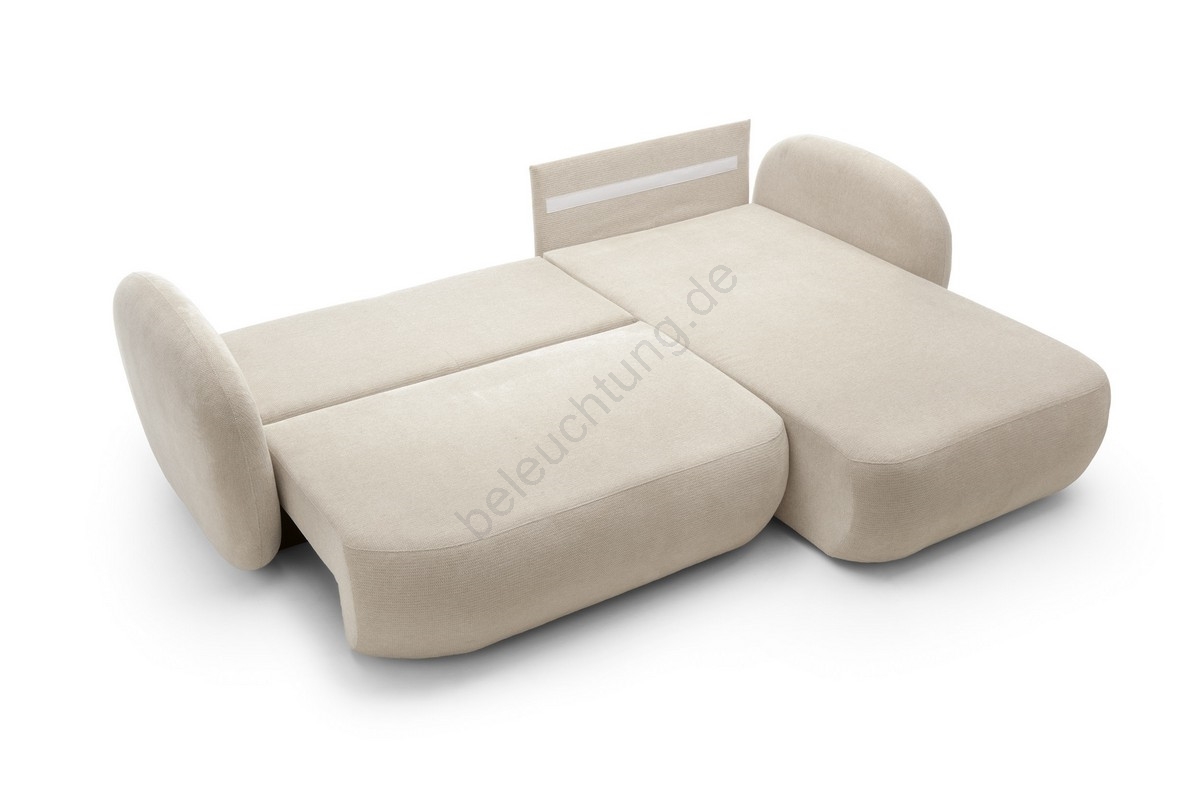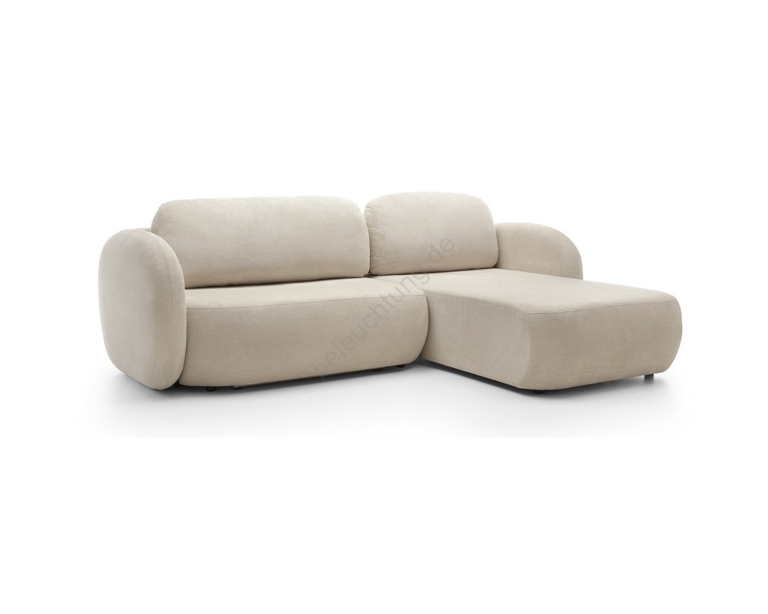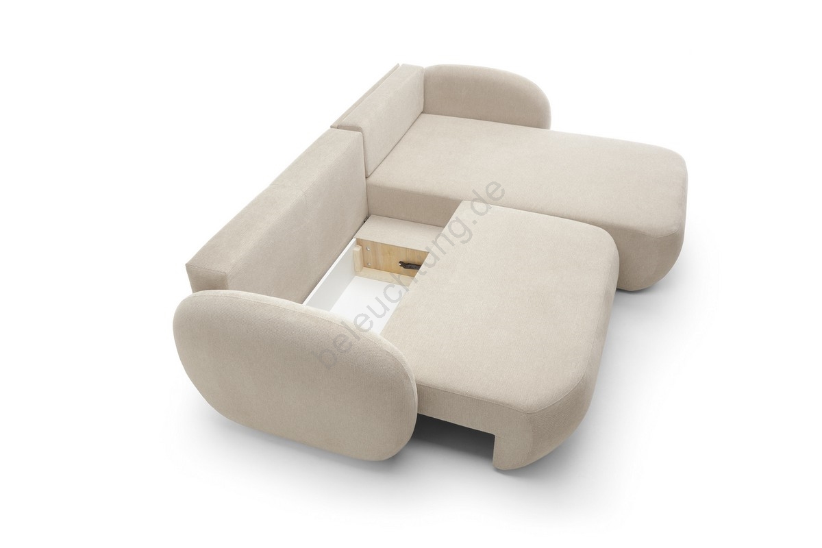 Eckgarnitur OLBIA mit Schlaffunktion und Stauraum in L‑Form, rechts, beige