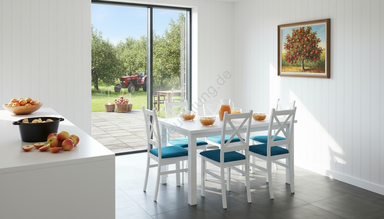 • Die weiße Farbe verleiht dem Esstisch ein modernes und zugleich gemütliches Aussehen.
