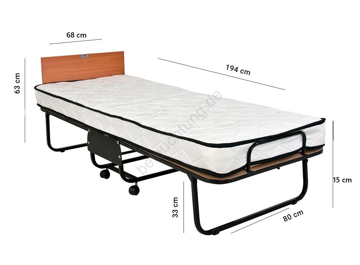 • Das Klappbett ist mit einem Kopfteil und einer 15 cm Federkernmatratze, die maximalen Komfort für einen ruhigen Schlaf bietet.
